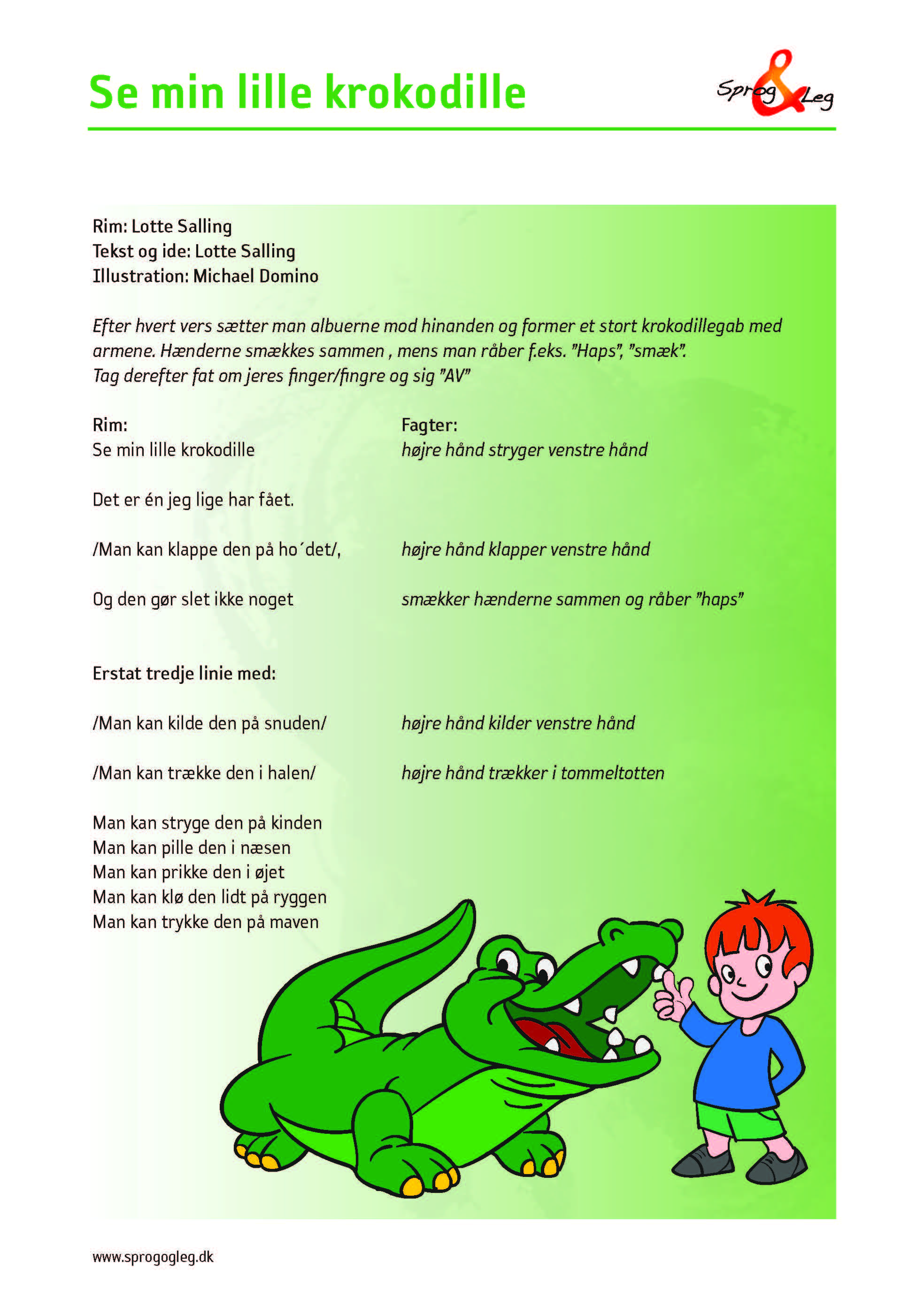 Tag derefter fat om jeres finger/fingre og sig ”Av”.Rim: Se min lille krokodille