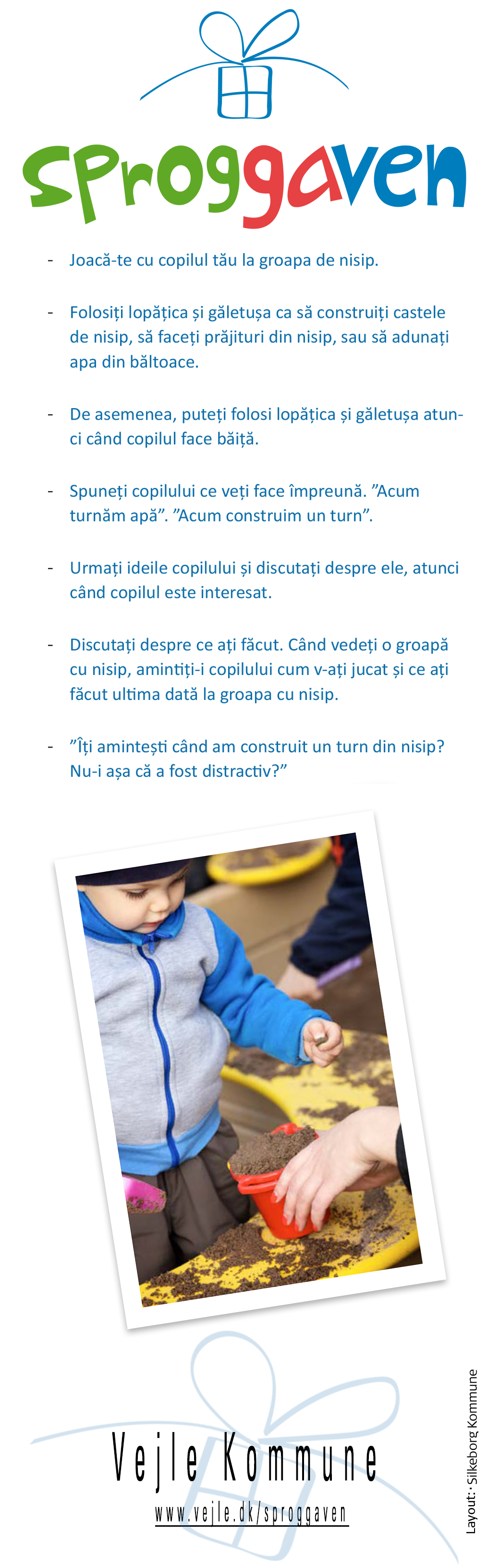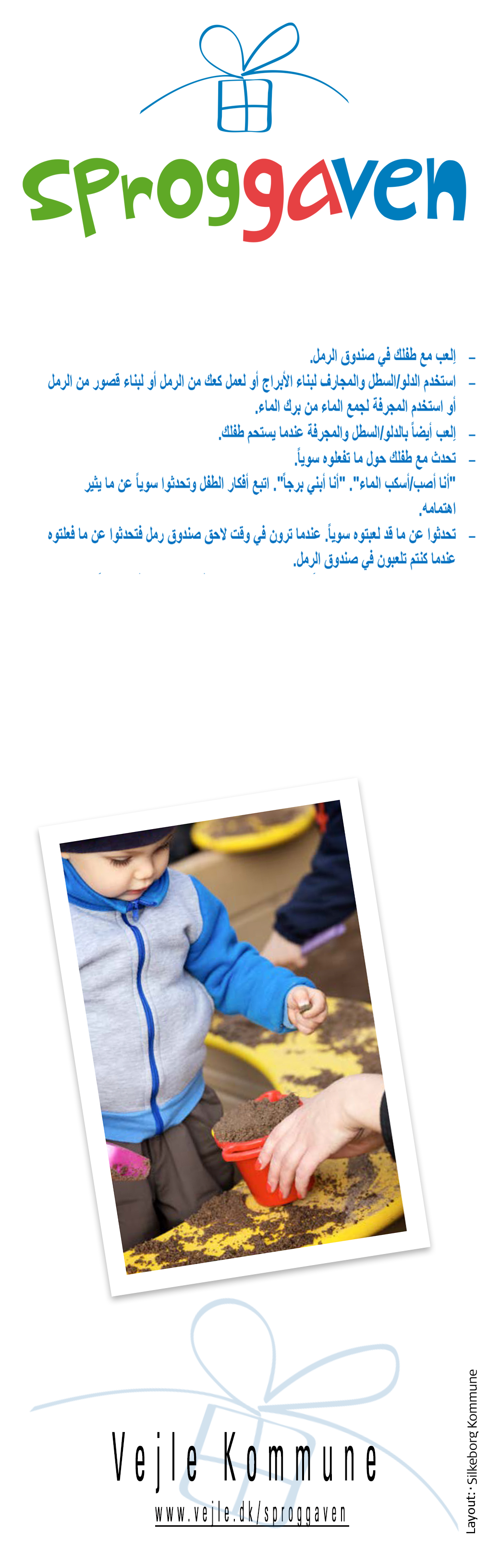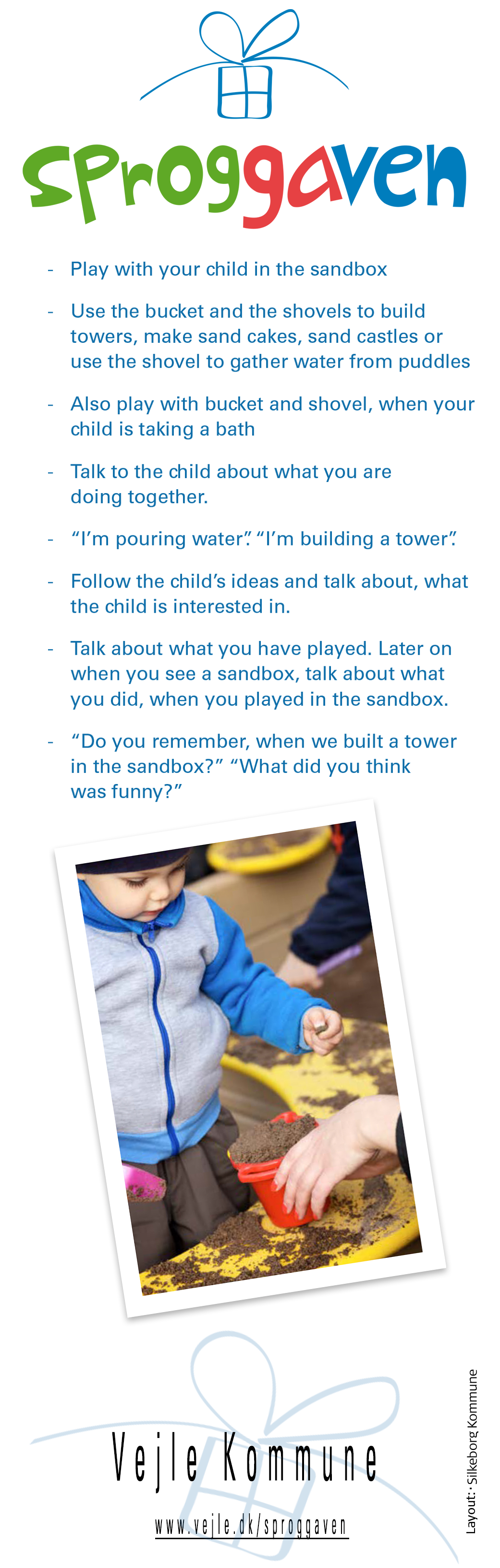 Forældrevejledning til 'Leg med dit barn i sandkassen' til børn på 3 år på forskellige sprog