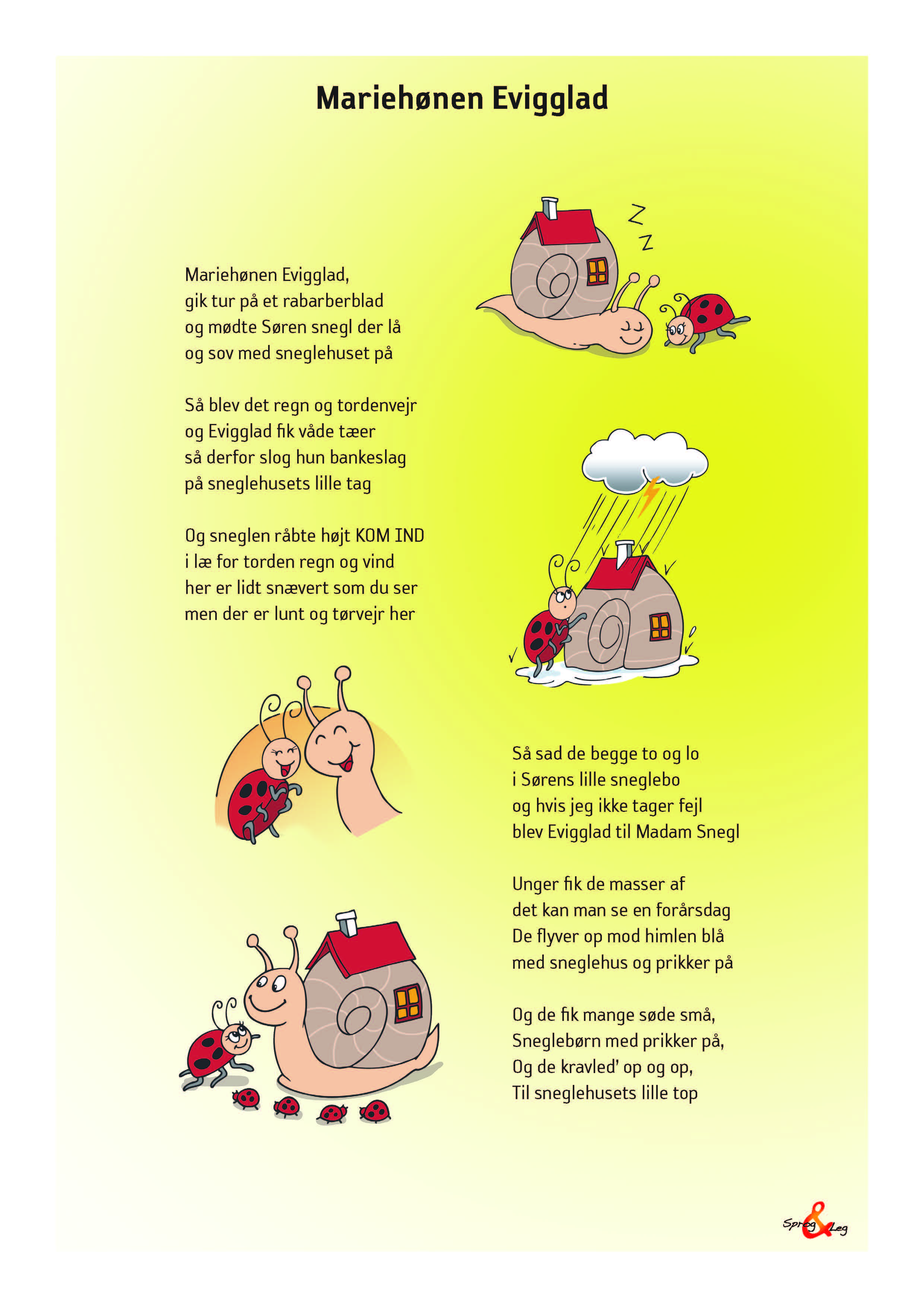 på sneglehusets lille tagOg sneglen råbte højt KOM IND
