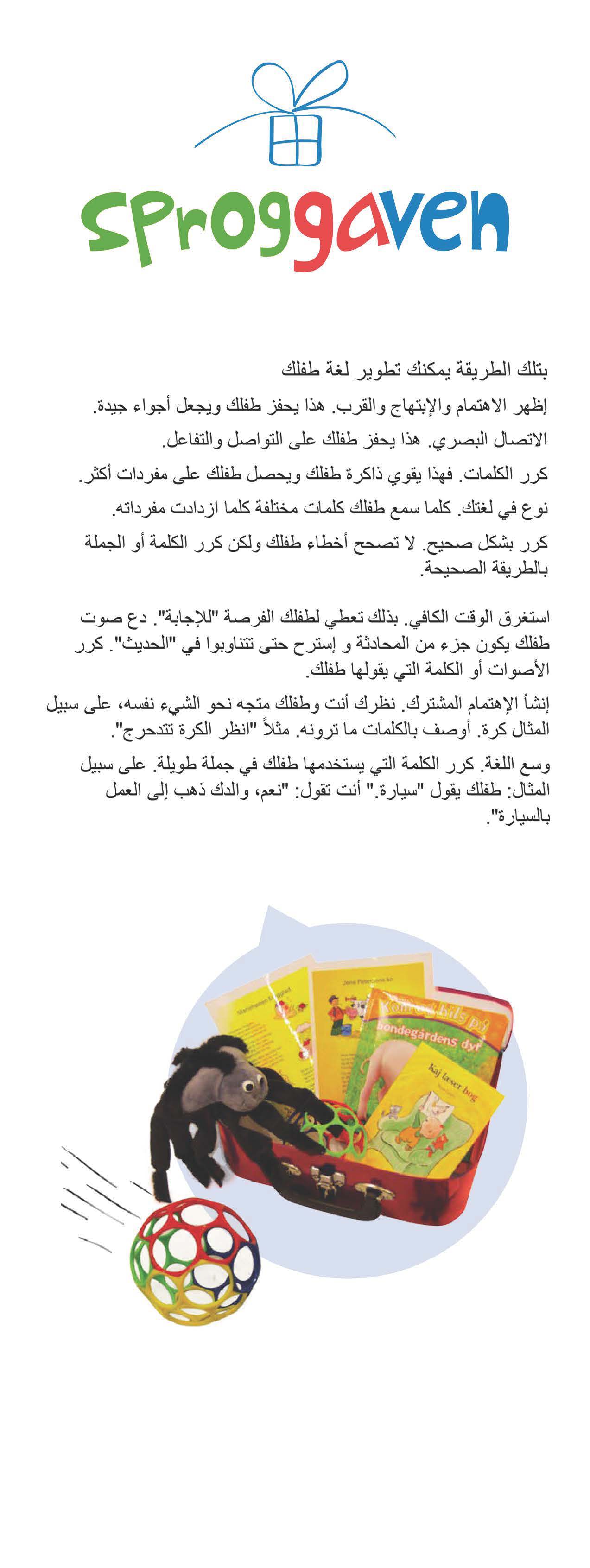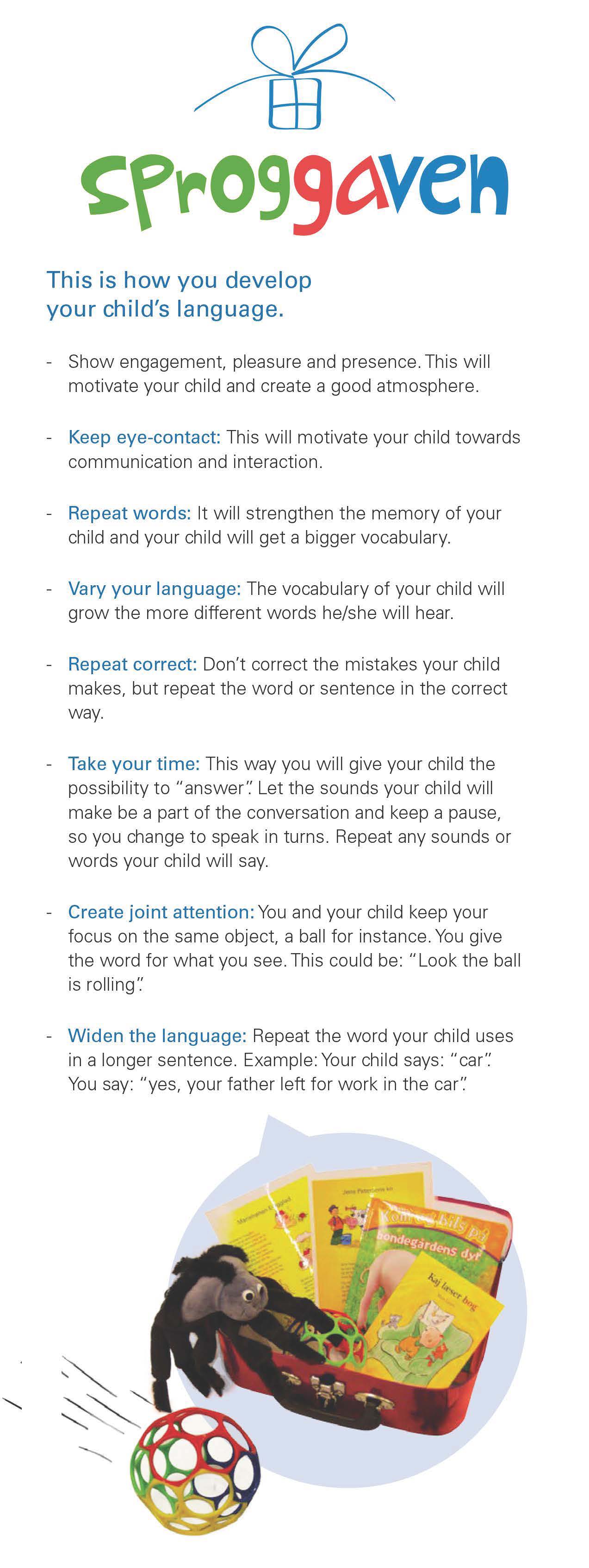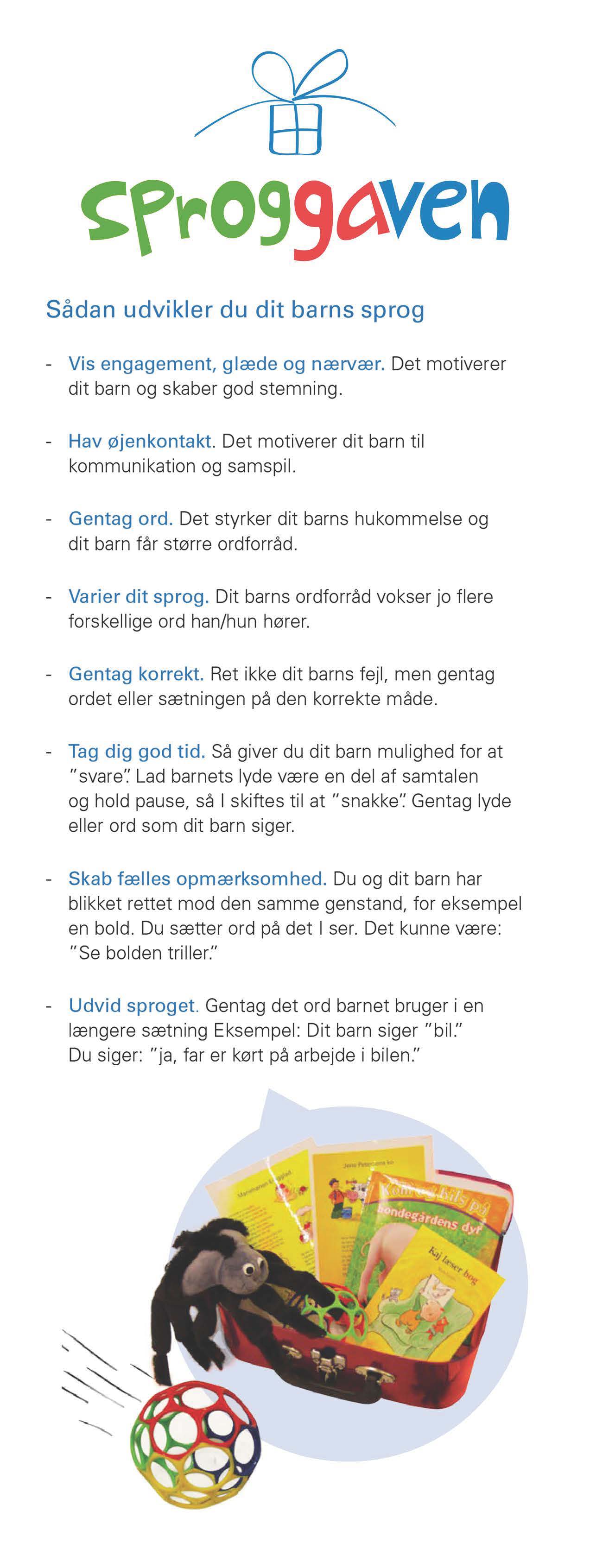 Materiale til dit barn på 9 måneder. Kufferten med materialet bliver udleveret af Sundhedsplejen og har til formål at styrke sproget hos børn, ved hjælp af de sprogstimulerende materialer.
