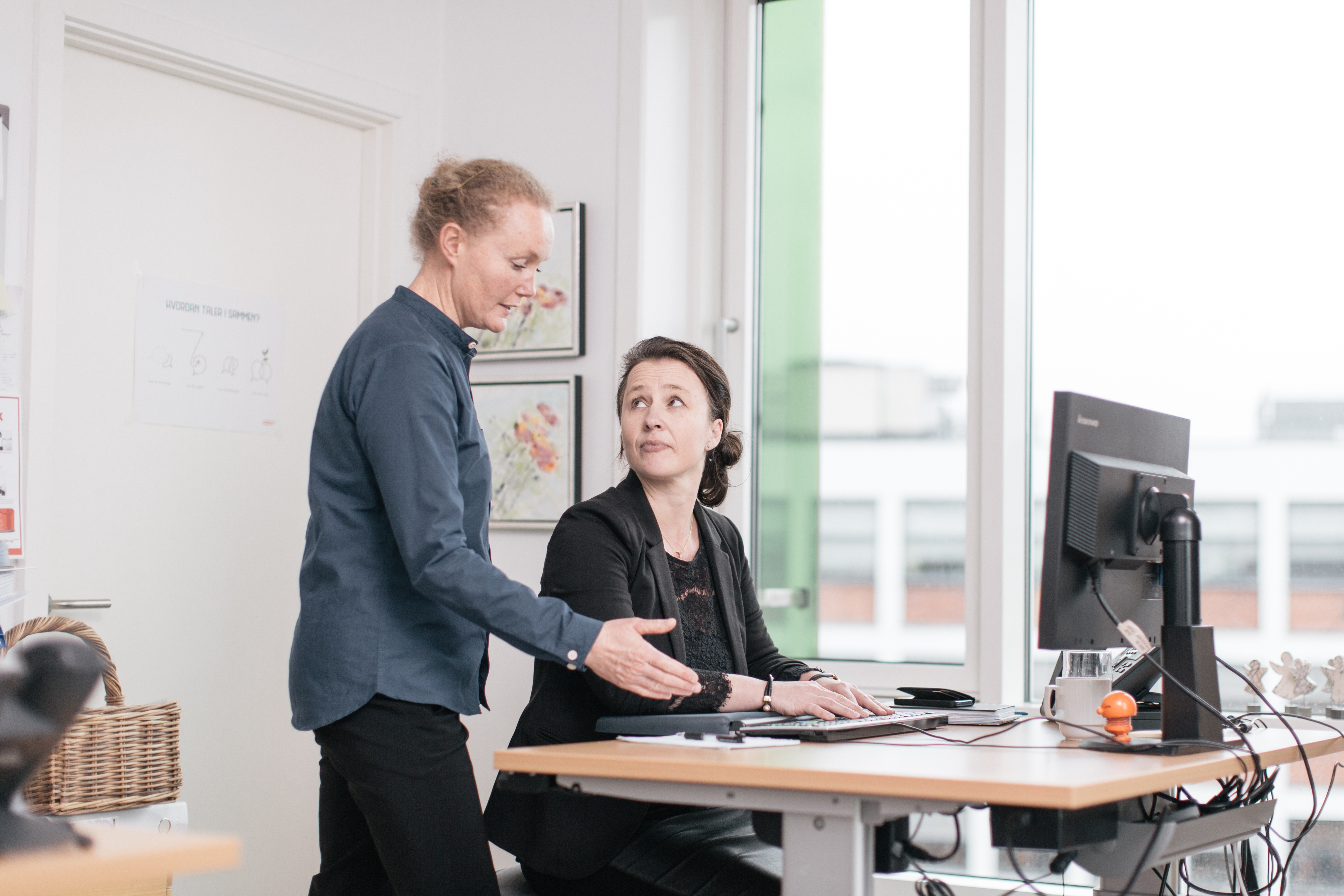 Vi har ansat både en ergoterapeut og en fysioterapeut. som yder råd og vejledning om ergonomi og om god indretning af din arbejdsplads.