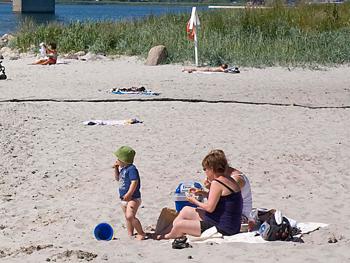 Albuen Strand er en bynær strand med pulserende liv og masser af plads til blandt andet leg på græsset, fitness og beachvolley.