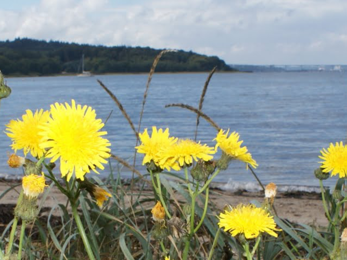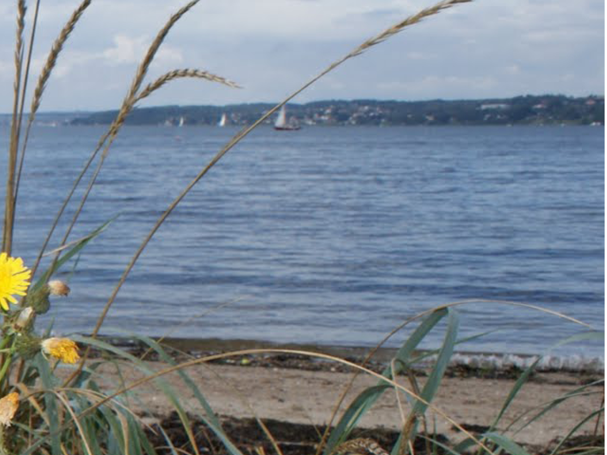 Revet er bygget op af sand, grus og strandskaller. Fra Holtser Hage har du en flot udsigt til begge sider over hele Vejle Fjord.